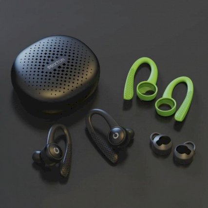 Sportske slušalice TWS160S s integriranim upravljanjem tipkama u obje slušalice. Sljedeća, prethodna pjesma, reprodukcija, pauza, odgovaranje i odbijanje poziva, pojačavanje glasnoće, stišavanje i glasovni pomoćnik. Pruža autonomiju u "stand by" načinu rada do 120 sati. Uz maksimalno punjenje od jednog sata i vrijeme reprodukcije do 3 sata. Uključujući 3 adaptera i poklon kutiju. Bluetooth 5.0. . Plastika.