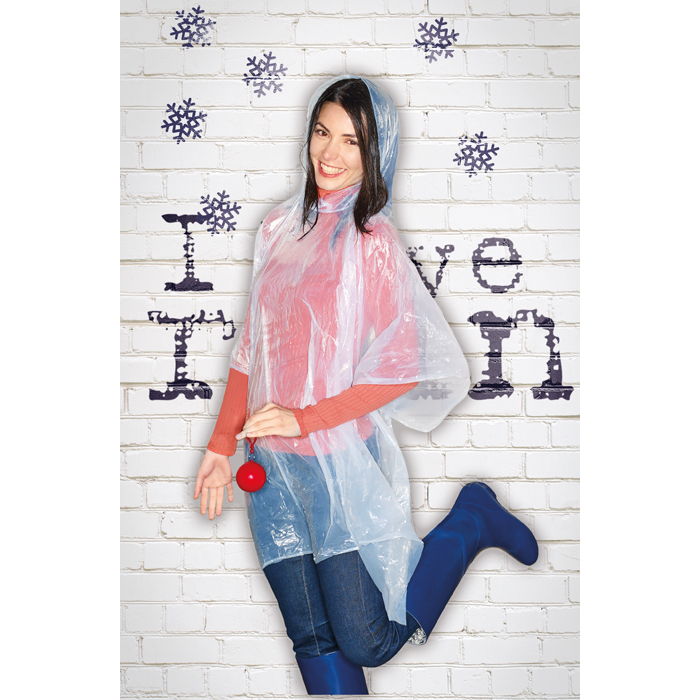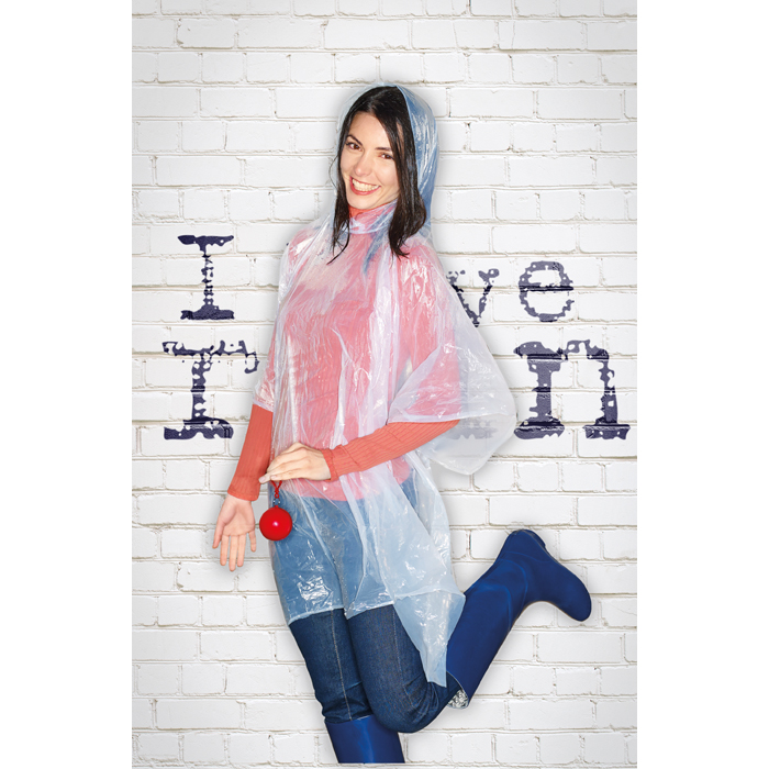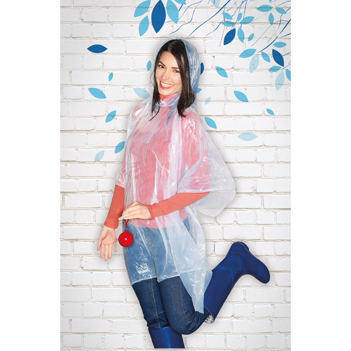 Jednokratna priručna kabanica s karabinom za vješanje na ruksak , torbu ili petlju na remenu. Praktična za izlete ili gradske šetnje u slučaju kišnog vremena.