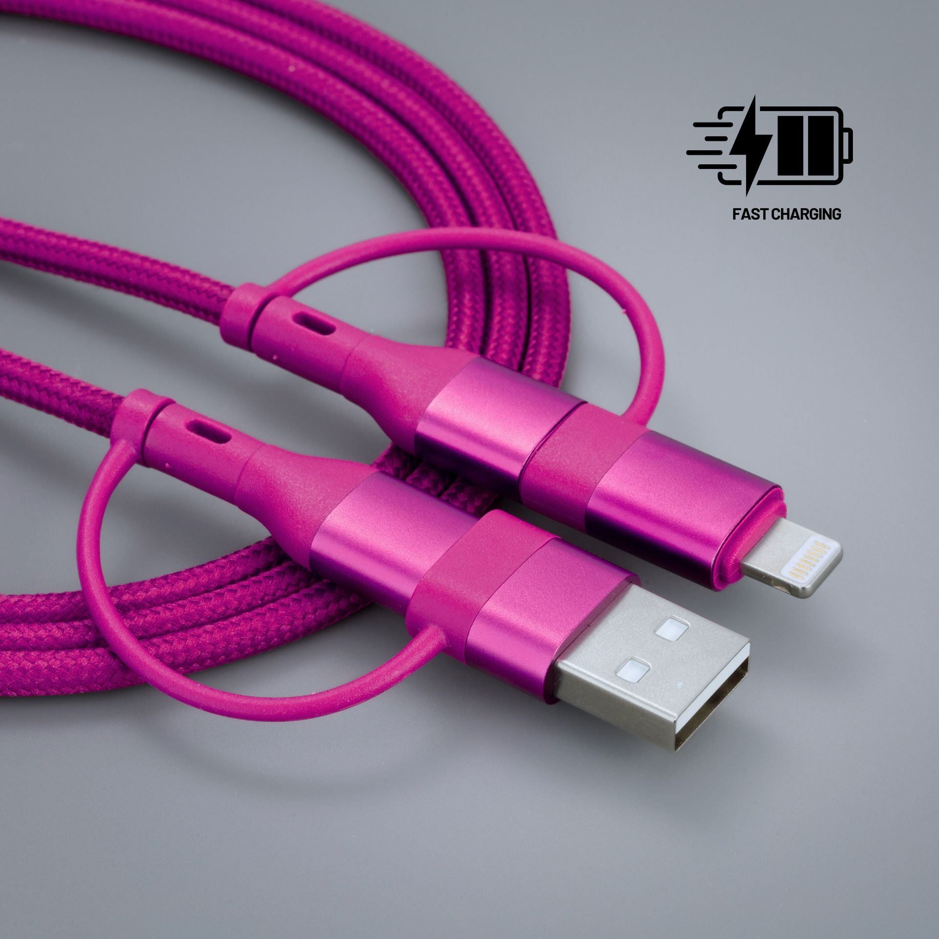 Kabel za punjenje i prijenos podataka, 4u1, 60W, magenta