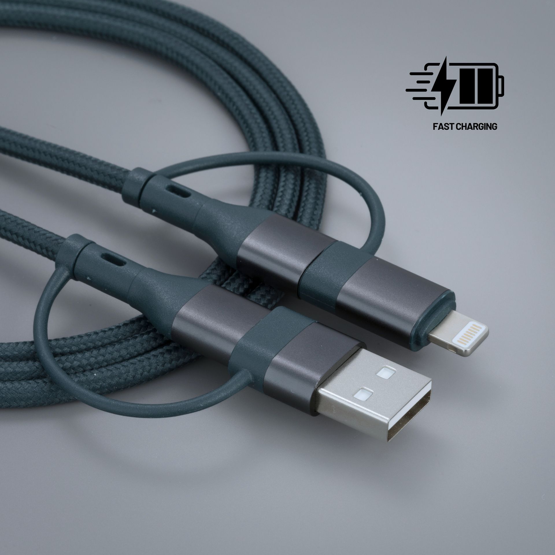 Kabel za punjenje i prijenos podataka, 4u1, 60W, sivi