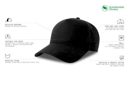 Kapa šilterica, EGON, 5 panela, reciklirana, na čičak, crna