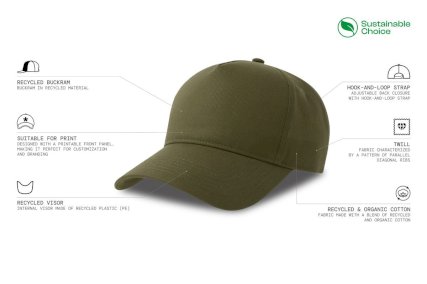 Kapa šilterica, EGON, 5 panela, reciklirana, na čičak, maslinasto zelena