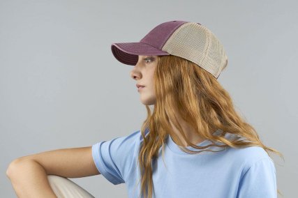 Nestrukturirana kamionerska kapa sa 6 panela i mekim, prozračnim mrežastim leđima. Kontrastni šavovi i prednji panel izrađeni od recikliranog pamuka obojenog pigmentom daju ovoj kapi prepoznatljiv vintage izgled.