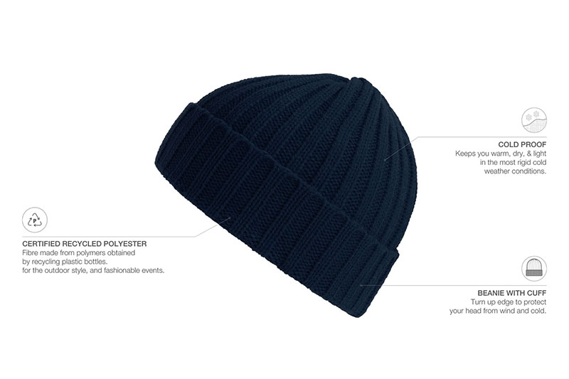 Kapa, zimska, Shore, rebrasto pletena, navy