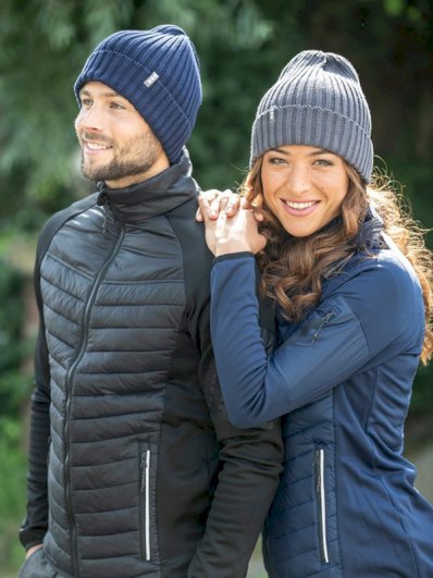 Pletena kapa Beanie od mekog rastezljivog RPET poliestera s preklopljenim rubom.
