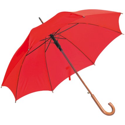 Kišobran, automatski, zakrivljena drvena drška, crveni
