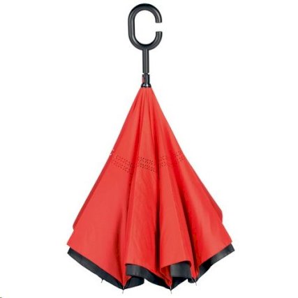 Kišobran,Flipped, obrnuti C-ručka, crveni