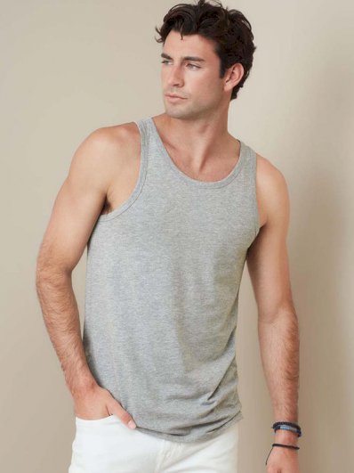 Majica bez rukava za muškarce. Moderan model koji naglašava figuru s bočnim šavovima. Otvor oko vrata i otvori rukava opšiveni, bočni šavovi, skidiva „tear-away” etiketa s podacima o njezi u bočnom šavu, tkana vrhunska etiketa s podacima o velilčini na vratu