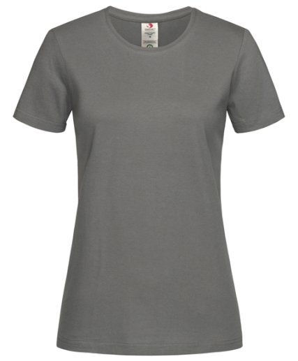 Popularna majica Classic-T za žene sada je dostupna i od pamuka iz ekološkog uzgoja - certificiranog prema standardu Organic Content 100. pamuk iz biološkog uzgoja, vratna traka, bočni šavovi, etiketa s veličinom i uputama za održavanje na vratu