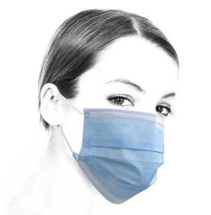 Jednokratna troslojna maska za lice s elastičnim vrpcama. Certificirano prema EN149:2001 Sukladno CE normi