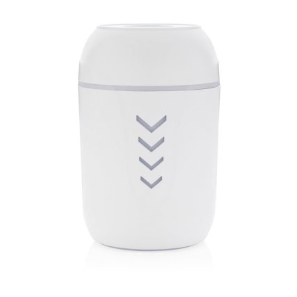 Ovlaživač zraka izrađen od izdržljivog ABS-a s integriranim unutarnjim UV-C svjetlom koje će učiniti ugodnim bilo koji interijer. Para iz ovlaživača će donijeti u svaki životni prostor optimalnu kvalitetu zraka. Zimi će se pobrinuti da bude manje suhog zraka, a ljeti će imati funkciju hlađenja. Mlaznica proizvodi vrlo malo zvuka, pa je čak prikladna za upotrebu noću. Integrirano UV svjetlo ubit će do 99,9% potencijalnih štetnih bakterija u vodi prije prskanja. isporučuje se sa 2 dodatna pamučna štapića koji zamjenjuju originalni. Jedna pamučna palica trajat će do 8 mjeseci trajne upotrebe. Sadržaj: 200 ml koji treba napuniti nakon 4 sata upotrebe. Valna duljina UV-C 270nm-280nm. UV-C svjetlo aktivirat će se samo kad je predmet zatvoren. Uključuje 120 cm TPE kabel za mikro punjenje bez PVC-a