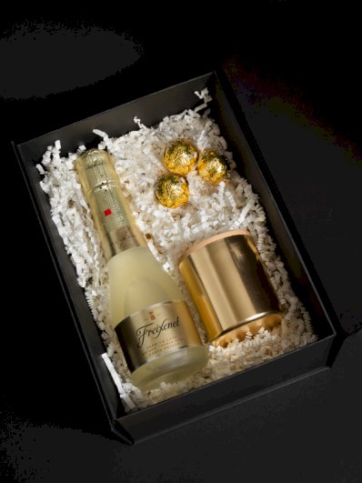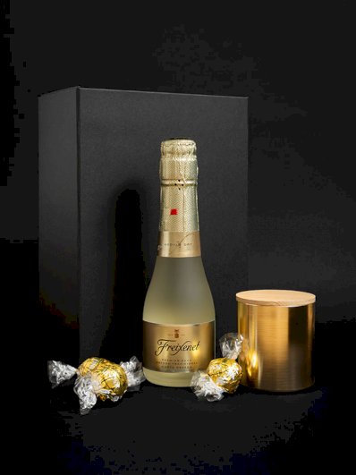 Paket sadrži 3 odabrana proizvoda pakirana u poklon kutiji s ukrasnom vrpcom, ukusan mini pjenušac 0,2L, elegantnu svijećicu u čaši ugodnog mirsa vanilije i malo slatkiša :-) Opustite se i uživajte :-) Min. narudžba s brendiranjem je 20 kom. *brendiranje nije uključeno u cijenu
