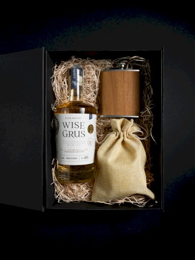 Paket sadrži 2 odabrana proizvoda pakirana u poklon kutiji s ukrasnom vrpcom, poznatu Wise Grus rakiju 0,7L, odličan Livanjski sir i pljosku 170ml Min. narudžba s brendiranjem je 10...
