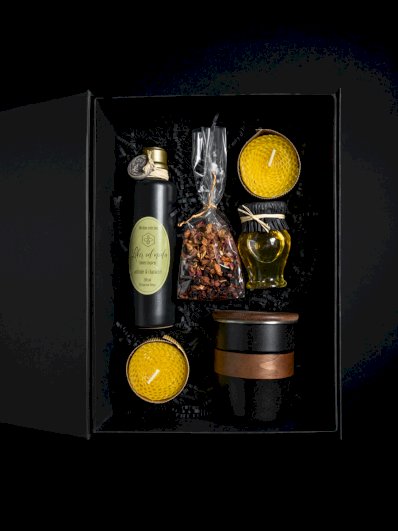 Paket sadrži odabrane proizvode u poklon kutiji s ukrasnom vrpcom, liker od meda 200 ml domaći u keramičkoj boci, svijeće u obliku saća, čaj, med 70 gr,...