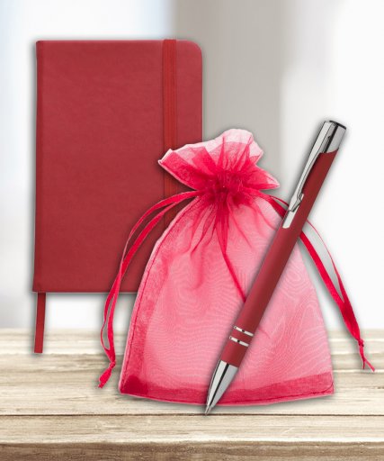 Mali poklon paket olovka i mini A6 rokovnik pakirani u organza vrećici. Minimalna narudžba s brendiranjem 50 kom. Moguće kombinacije i u drugim dostupnim bojama. art. 2888/art.12576/art...