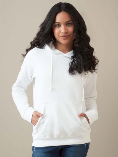 Izdržljiva kombinacija od kružno tkanog pamuka i poliestera: srednje teški sweatshirt s kapuljačom za žene s češljanom unutarnjom stranom, džepom u obliku tobolca te elastičnim, rebrastim...