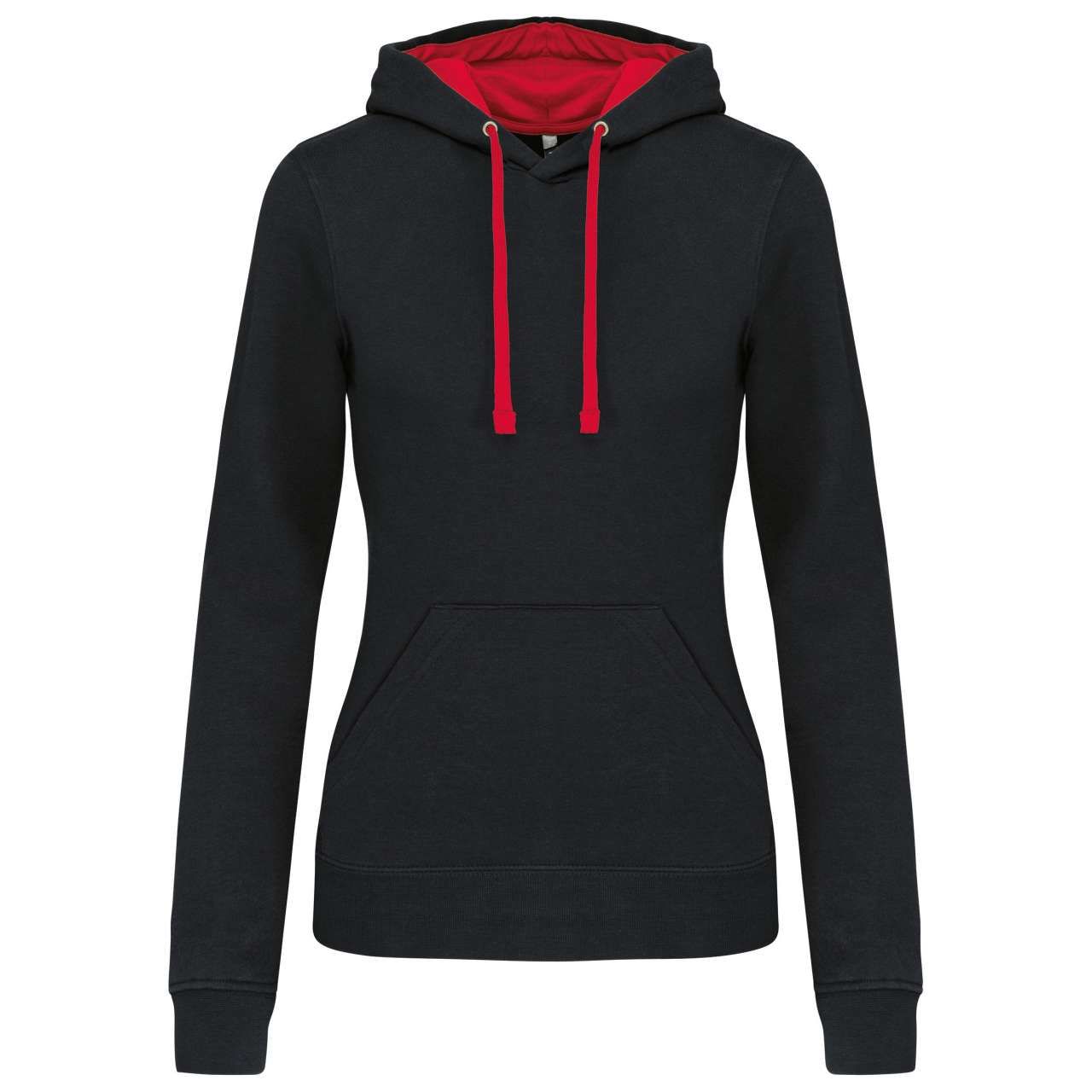 Pulover, DR, ženski, s kapuljačom, 280g, crno/crveni, S