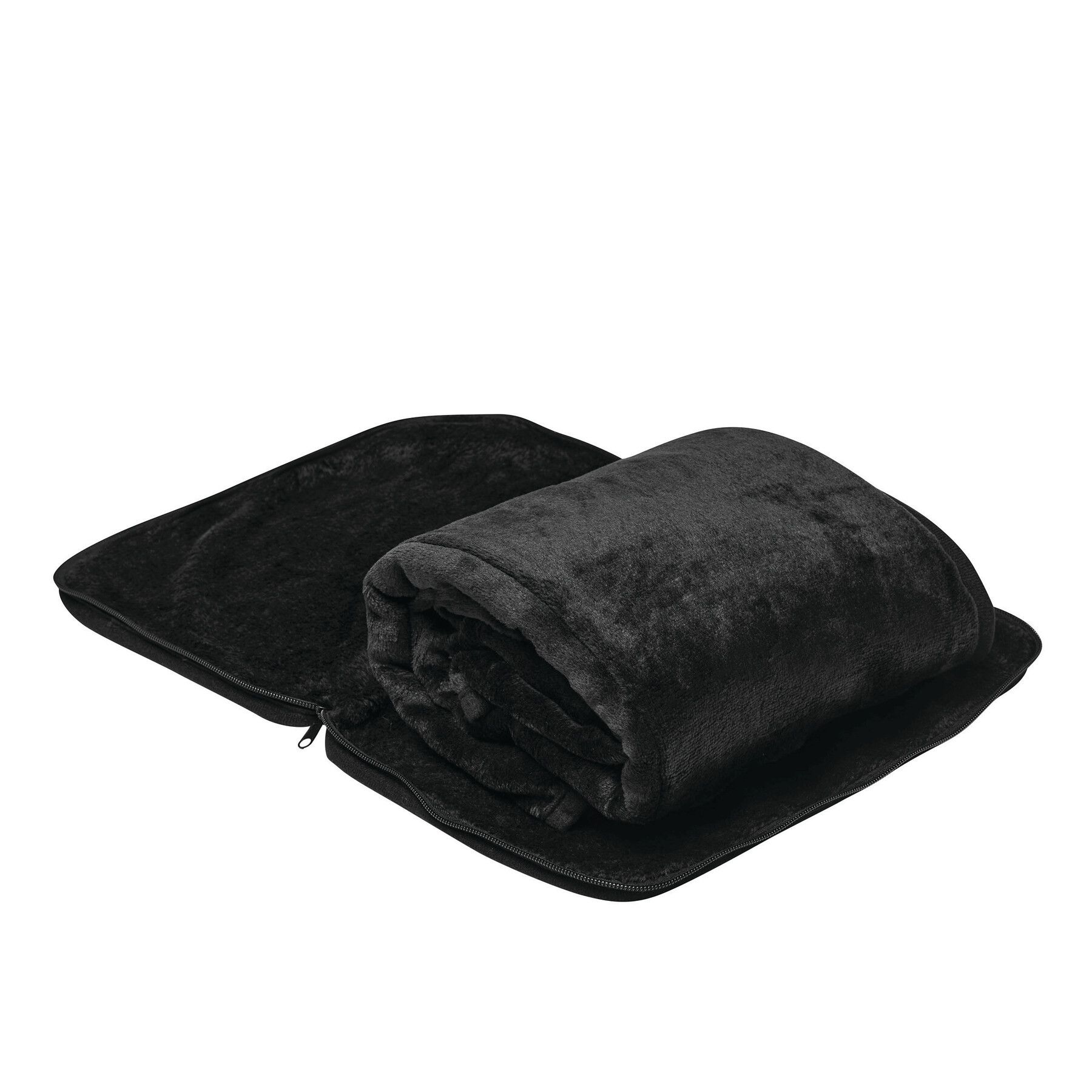 Putni set, dekica + jastuk za vrat, 100% rPET, u torbici, crni