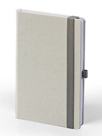 KNJIŽNI BLOK: format: 14x21 cm; opseg: 192 str.; sadržaj: osobni podaci i crtovlje; tisak: u 1 boji na bijelom papiru gramature 80 g/m2; zaobljeni uglovi; predlist, zalist i džepić tonirani u sivu boju • KORICE: korica je izrađena od koagulatnog materijala koji je preporučljiv za termo tisak, foliotisak i digitalni tisak; zaobljeni uglovi; gumice u raznim bojama; gumica-držač za olovke; džepić na zadnjoj unutarnjoj korici • PAKIRANJE: 20 kom.