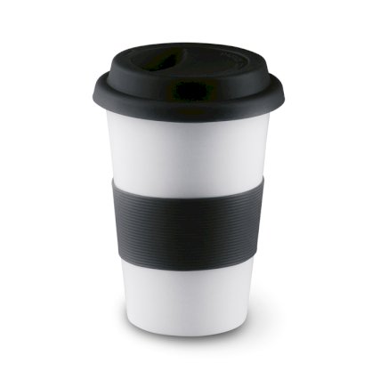 Šalica keramička sa silikonskim poklopcem i zaštitnom trakom,crna