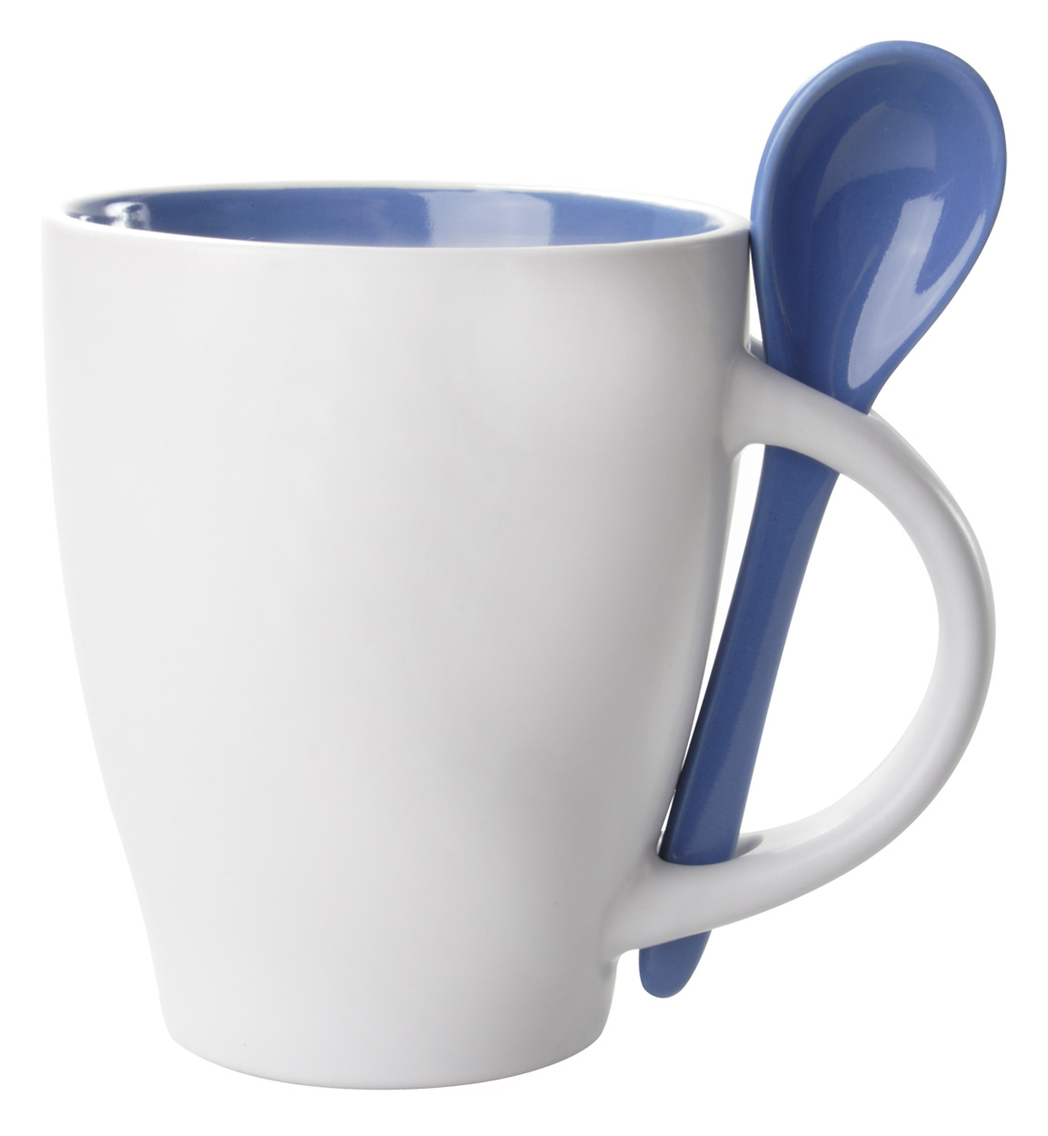 Šalica, sa žlicom, 300ml, bijelo-plava