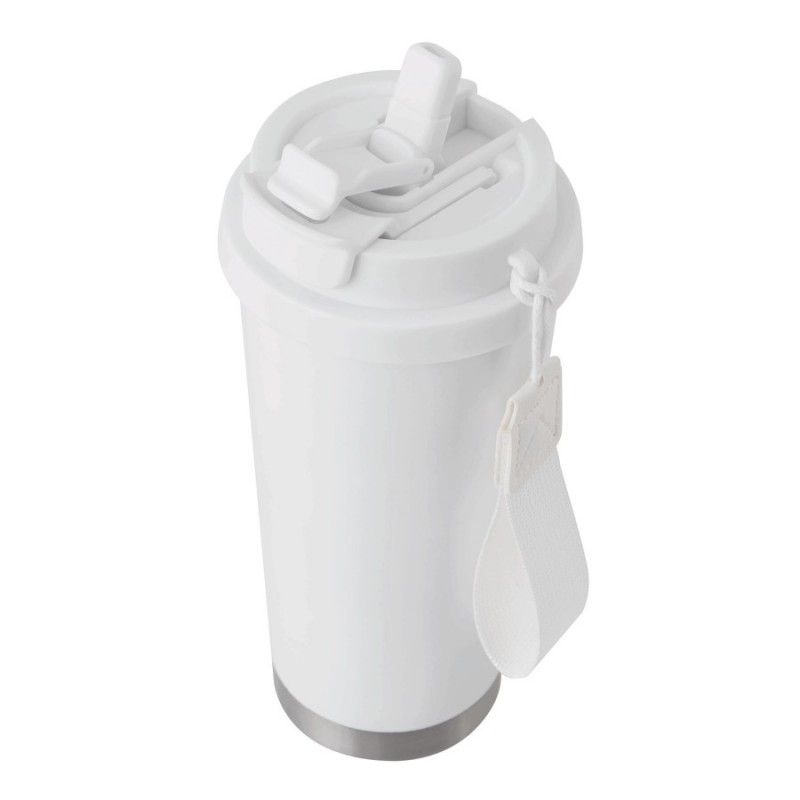 Termo šalica, sa slamkom, bijela