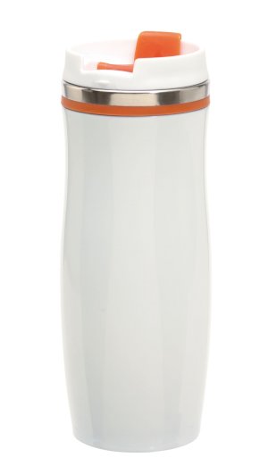 Termos boca s duplim stijenkama CREMA nehrđajući čelik izvana i iznutra, s poklopcem na navoj i integriranim otvorom, gumeni prsten oko poklopca i otvor u boji, kapacitet cca. 400 m