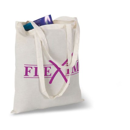 Praktična platnena vrećica s 3 ručke, 2 kratke i jedna duga za nošenje preko ramena. Tisak loga ili promotivne poruke moguć na obje strane...