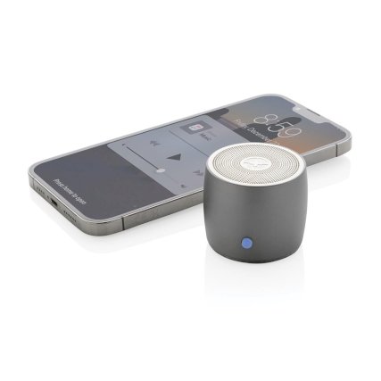 Kompaktni promotivni bežični bluetooth zvučnik 3W od recikliranog aluminija s iznenađujuće jakim i kristalno čistim zvukom. S pojačanim donjim dijelom zvučnika za bolje performanse basa....
